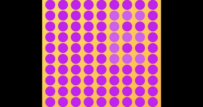 På billedet nedenfor ser du et billede med flere lilla prikker. Men nogle af disse prikker har en lidt anden farve end de andre, og danner et bogstav.